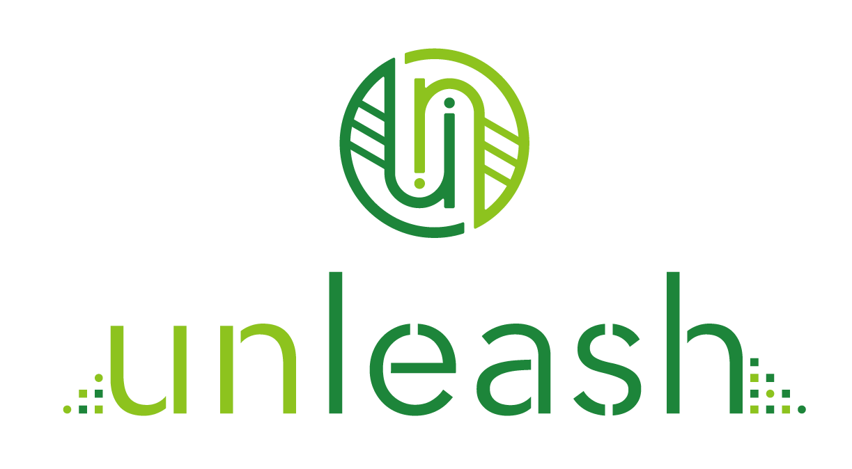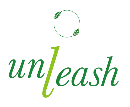 一筆書きのunleashは社会とのつながりを表現。植物は支え合って生きているを表現しています。