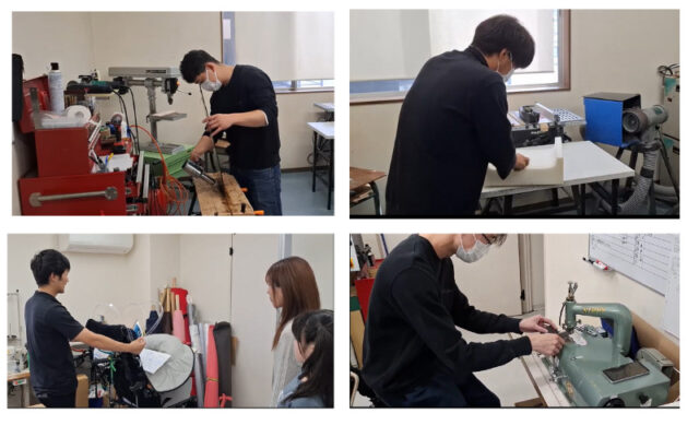 皮を薄く削る「皮漉き機」やプラスチック製のものを加工するオーブンなど、初めて見る機械ばかりでした。