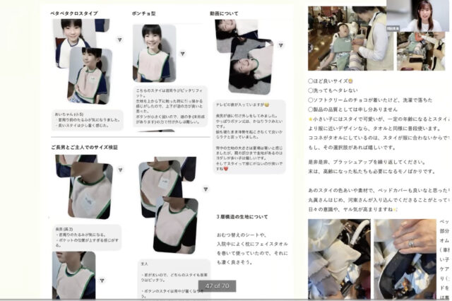 サイズ展開も赤ちゃん向けや高齢者向けが多い中、年齢や用途に合い、首回りの調整がしやすい幅・長さにこだわって試作を重ねました。